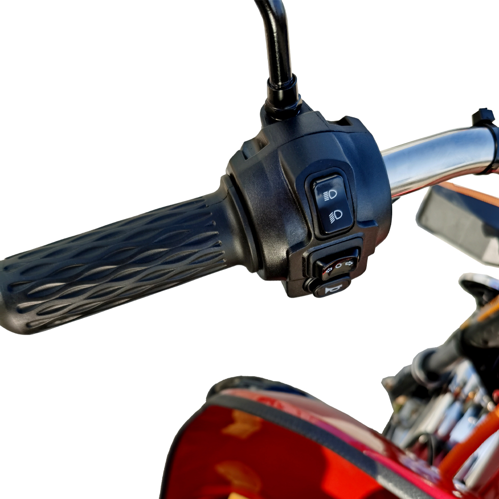 Easy to operate with multifunctional switches of light, brake, and speed.
